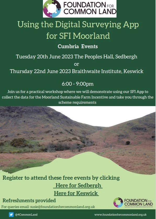 We are delighted to announce we will be running two practical workshops in Cumbria , where we will be demonstrating using our SFI App in the field to collect data for the Moorland Sustainable Farm Incentive and take you through the scheme requirements.