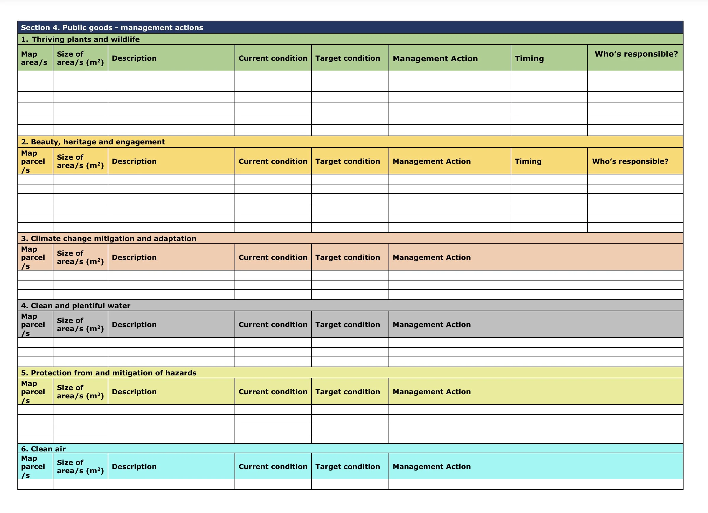This template can be downloaded and filled in alongside your public goods map to show your plan for the Common and who’ll be doing what.